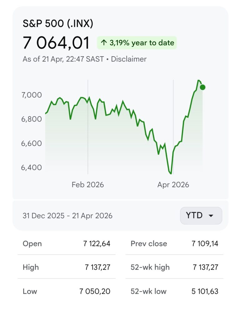 Another reason people don’t start investing is their fear of losing money. There is still a universal belief that investing in shares is risky. Hopefully we have debunked this myth for our clients with all our explanations of the longer-term performance of shares and the difference between shorter-term volatility and the inherent risks of different asset classes. We only have to look at the performance of the S&P500 over the first four months of this year (chart) to see how volatile shares can be, but also how futile it is to try and time your entry and exit points. If you thought that shares were too expensive at the end of 2025 and converted all your money into cash, you got what you wished for in March this year with shares falling, but if you didn’t change your mind and started buying shares immediately after the fall started, you would have missed out on the subsequent rise in prices.
